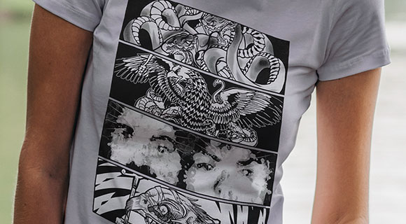 Used for: Full color images with many tones of color when printing on a dark shirt