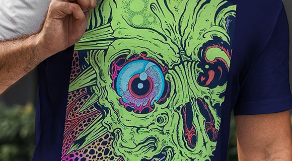 A printing technique that allows lesser amounts of ink in a certain color to be used on screen printed shirts, allowing it to mix with the garment color or other screen print colors to create the illusion of more colors than are actually being printed. Learn more about our halftone printing services.